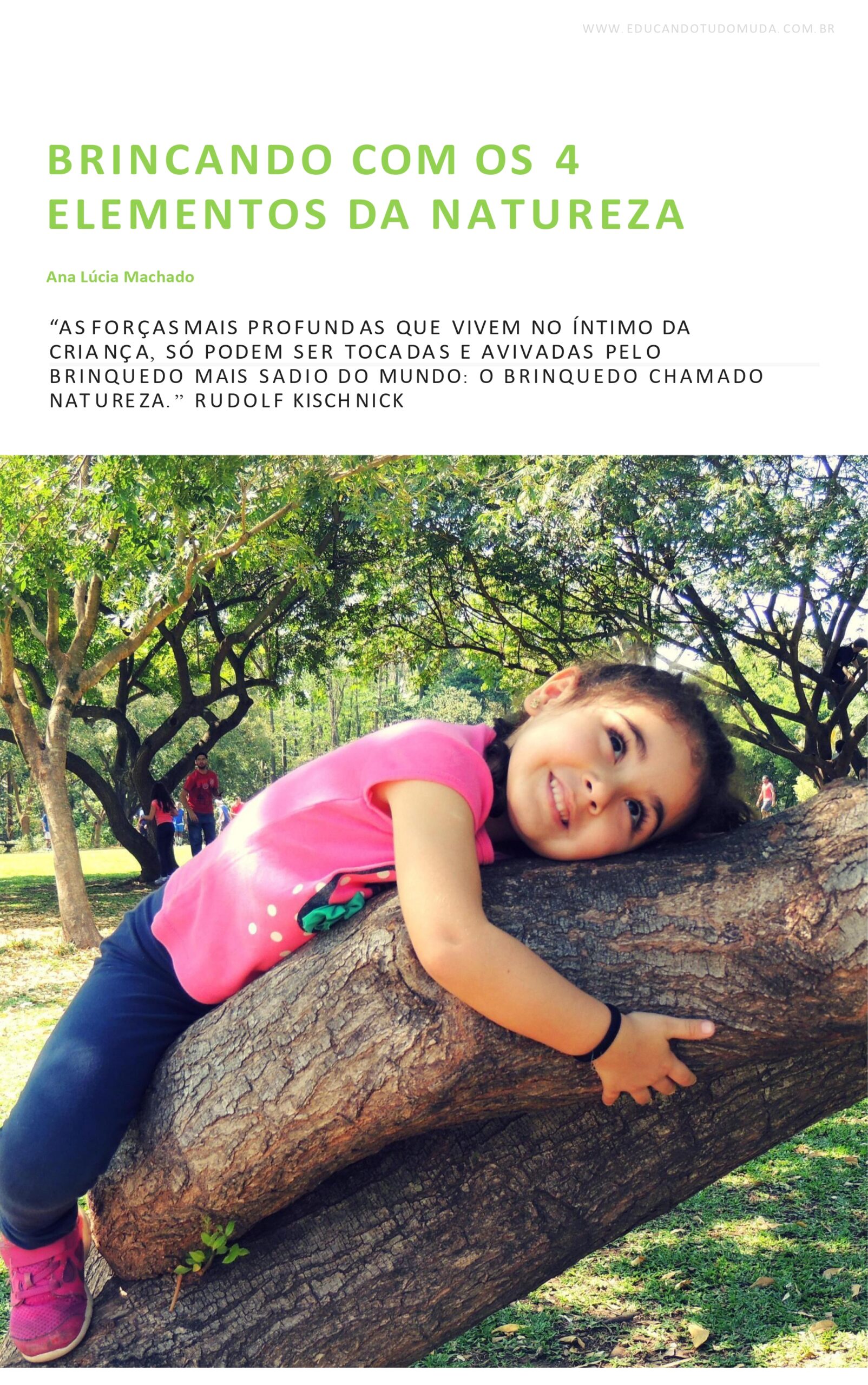 Está disponível um lindo e-book escrito especialmente para os leitores do Educando Tudo Muda, intitulado Brincando com os Quatro Elementos da Natureza.